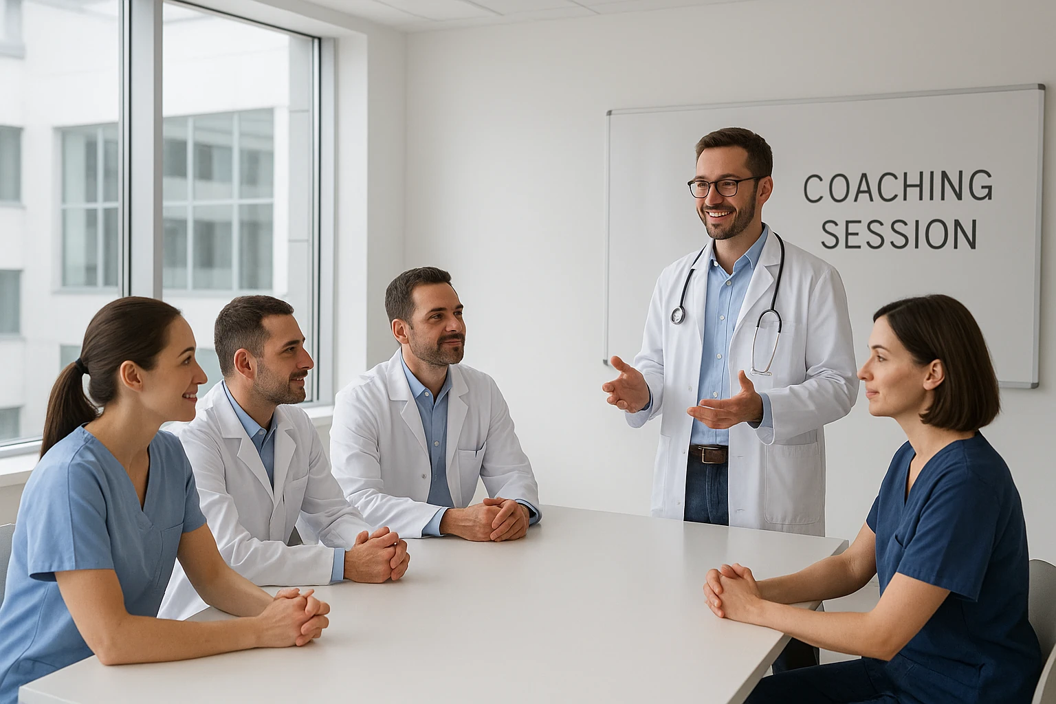 Sedno Toyota Kata w szpitalach to codzienne, 10-15 minutowe spotkania między przełożonym a podwładnym przy tablicy [4]. To nie są tradycyjne odprawy operacyjne, ale strukturalne sesje coachingowe, które rozwijają zdolność naukowego myślenia.